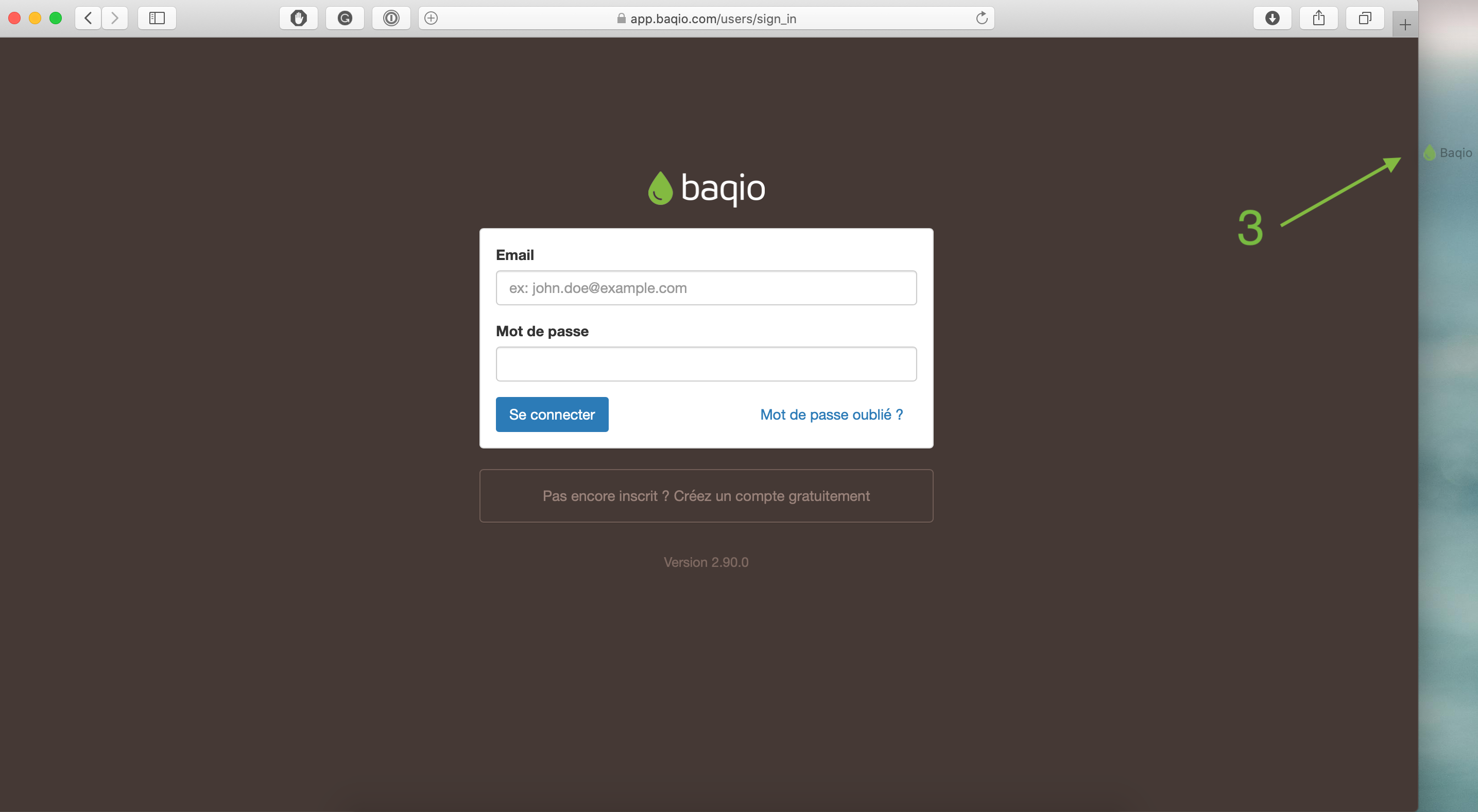- Sur internet, rendez-vous sur https://app.baqio.com/users/sign_in