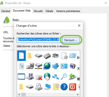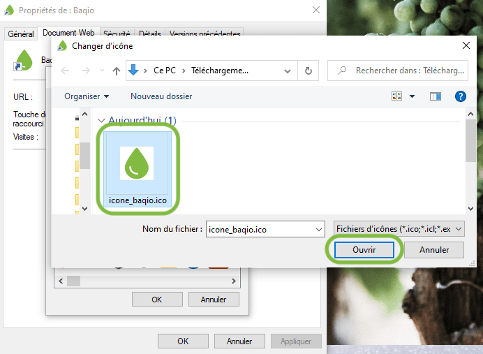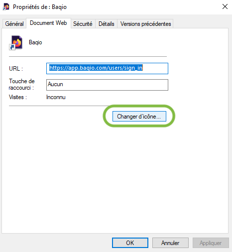 - Une icône a été ajoutée à votre bureau. Si vous souhaitez la personnaliser et insérer le logo Baqio. Poursuivez :