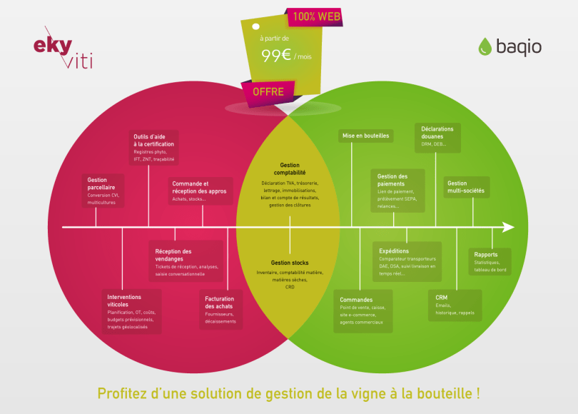 Et si vous pouviez gérer votre exploitation de vin ou spiritueux de A à Z, où que vous soyez ? C’est ce qu’on vous propose en connectant Baqio et Ekyviti.