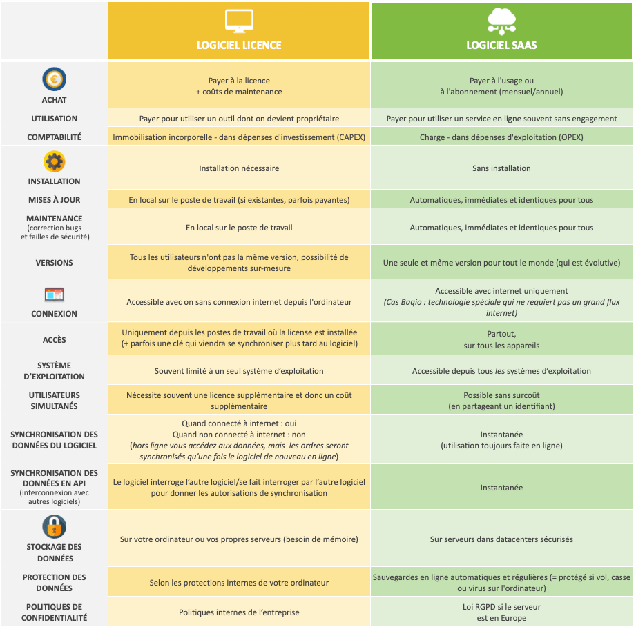 1. Principales différences entre un logiciel sous licence et un logiciel en ligne (SaaS)