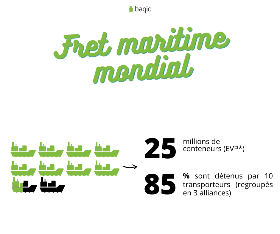*EVP = conteneurs Équivalent Vingt Pieds. Un porte-conteneurs de 1000 EVP correspond à navire qui peut contenir 1000 conteneurs de 20 pieds.